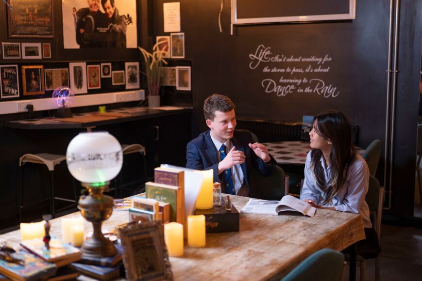 Due to the notable popularity of Basil’s Bistro, a second bespoke Year 11 area has had to be developed in double quick time. Again, in the words of Mr Gregson: “While the light and airy Basil’s Bistro has the ambience of a boulevard café, the new Gaslight Club is more edgy and urban. The theme is unmistakeably nineteenth century with period posters and artwork relating to historic events, films and novels. To add to the ‘exclusive’ theme of the club, entrance is by membership card only. This is vital as cads, bounders and scoundrels are not allowed! We have also recently staged live Year 11 music for the first time which was great; a little light jazz in the background to add to the relaxing mood. The developments have certainly been well-received by students and a number of them are already thinking of asking the Senior Prefect Team to develop something similar but different next year in the Sixth Form.”