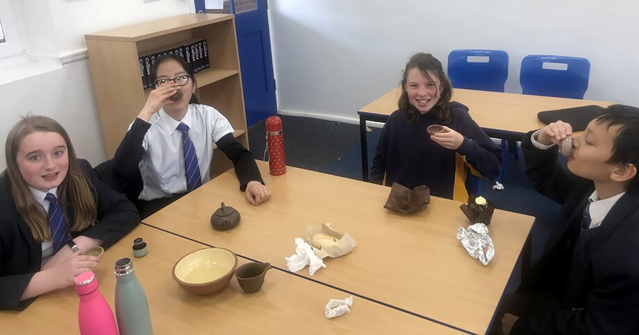 Students enjoy traditional Chinese Tea