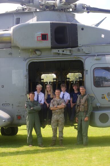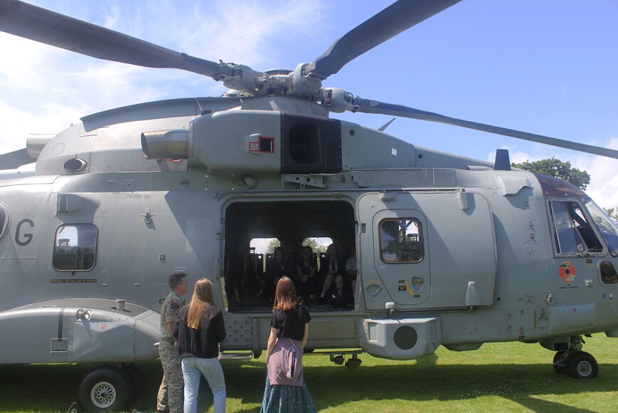 Year 9 and 10 students gathered on the field to watch it land, then hear personnel from the Royal Navy and Royal Marines talk about careers in the Military before being given a tour of the aircraft with some able to sit in the flight seats! All students were able to come and look around and talk during lunchtime, and then Year 7 and 8 students watched it take off.